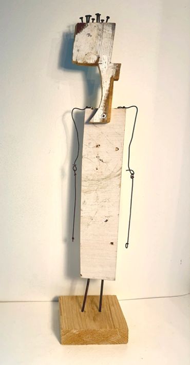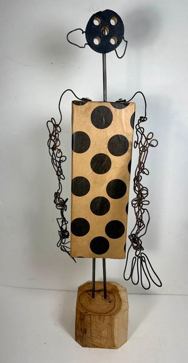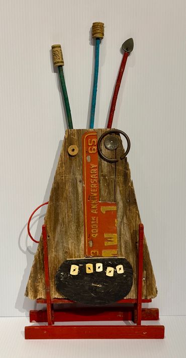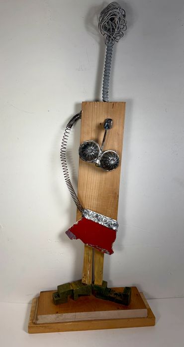 My father was a "saver" so it is no accident that I am drawn to recycled materials. Searching for and finding these discarded objects at flea markets, junkyards and garage sales is an integral part of my process. The challenge is to combine disparate found pieces along with my handcrafted elements to give them new life and personality. I work spontaneously and intuitively constantly reassessing the progress of each piece. Each action informs the next until a distinct identity emerges and a character is born. I love making these quirky pieces with their playful personalities and their thoughtfully matched names. It is my hope that my “extended family”, with its gritty and whimsical flavor, will evoke a sense of delight and amusement.