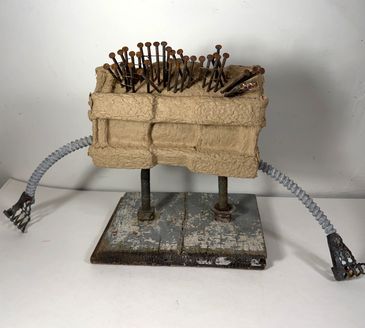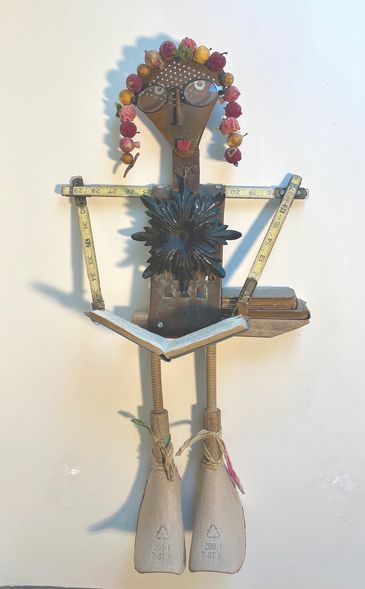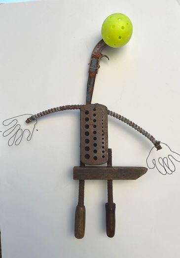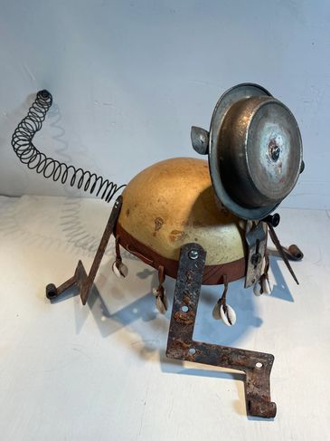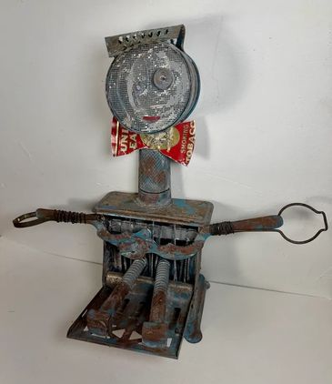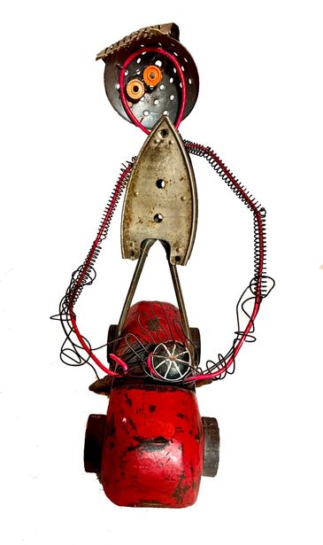 My father was a "saver" so it is no accident that I am drawn to recycled materials. Searching for and finding these discarded objects at flea markets, junkyards and garage sales is an integral part of my process. The challenge is to combine disparate found pieces along with my handcrafted elements to give them new life and personality. I work spontaneously and intuitively constantly reassessing the progress of each piece. Each action informs the next until a distinct identity emerges and a character is born. I love making these quirky pieces with their playful personalities and their thoughtfully matched names. It is my hope that my “extended family”, with its gritty and whimsical flavor, will evoke a sense of delight and amusement.